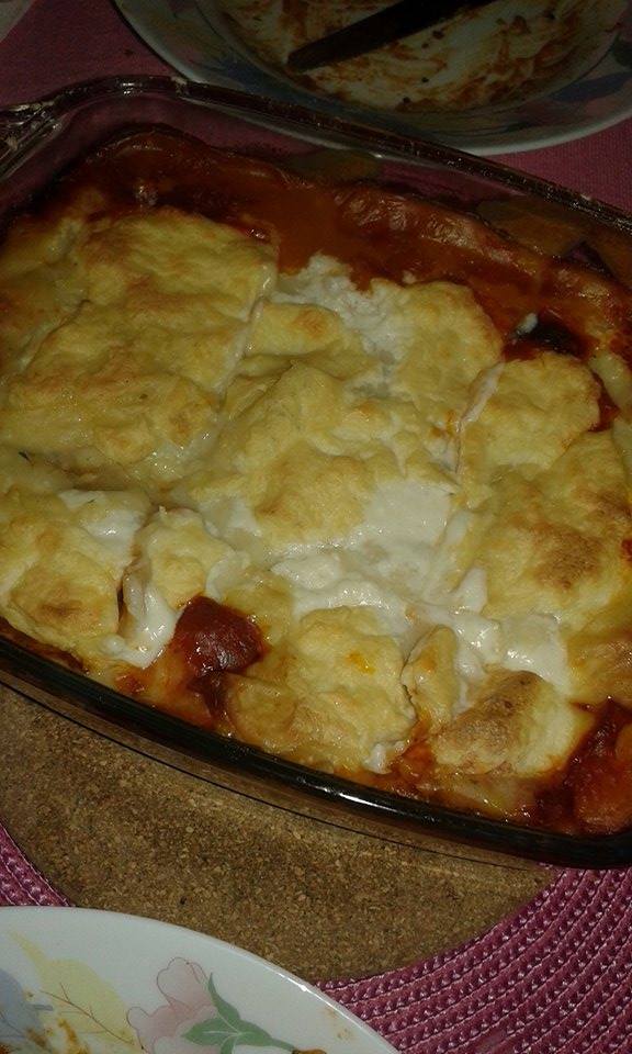 Préparer la béchamel. Faire chauffer l’eau dans une casserole et y plonger le cube de bouillon pour qu’il se dossolve. Réserver 5cl du lait et ajouter le reste à la casserole ainsi que la margarine. Délayer la fécule dans les 5cl de lait et ajouter à la casserole. Saler, poivrer et incorporer la noix de muscade selon votre goût. Laisser épaissir le mélange tout en remuant. Retirer du feu dès que la préparation arrive à la consistance souhaitée.