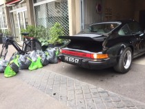 Pour le fun, je vous joins une photo-souvenir de la sortie d’une porsche, un soir de distribution, au 40 rue de la Réunion, qui nous a obligé en catastrophe a libérer le passage… Heureusement ce 10 juin, nous avions encore des légumes en sac et pas les gros cageots à bouger…