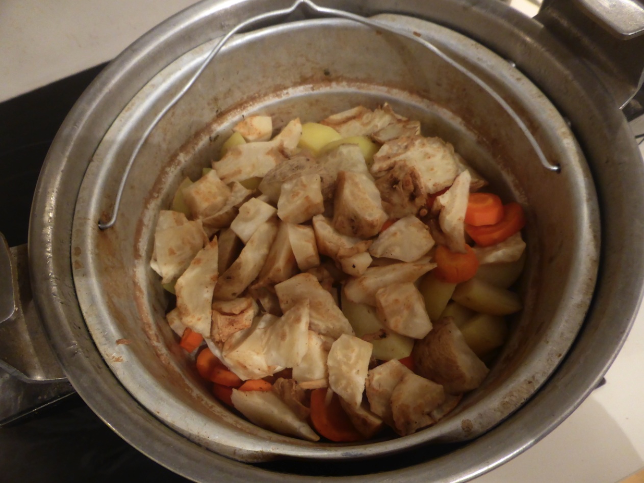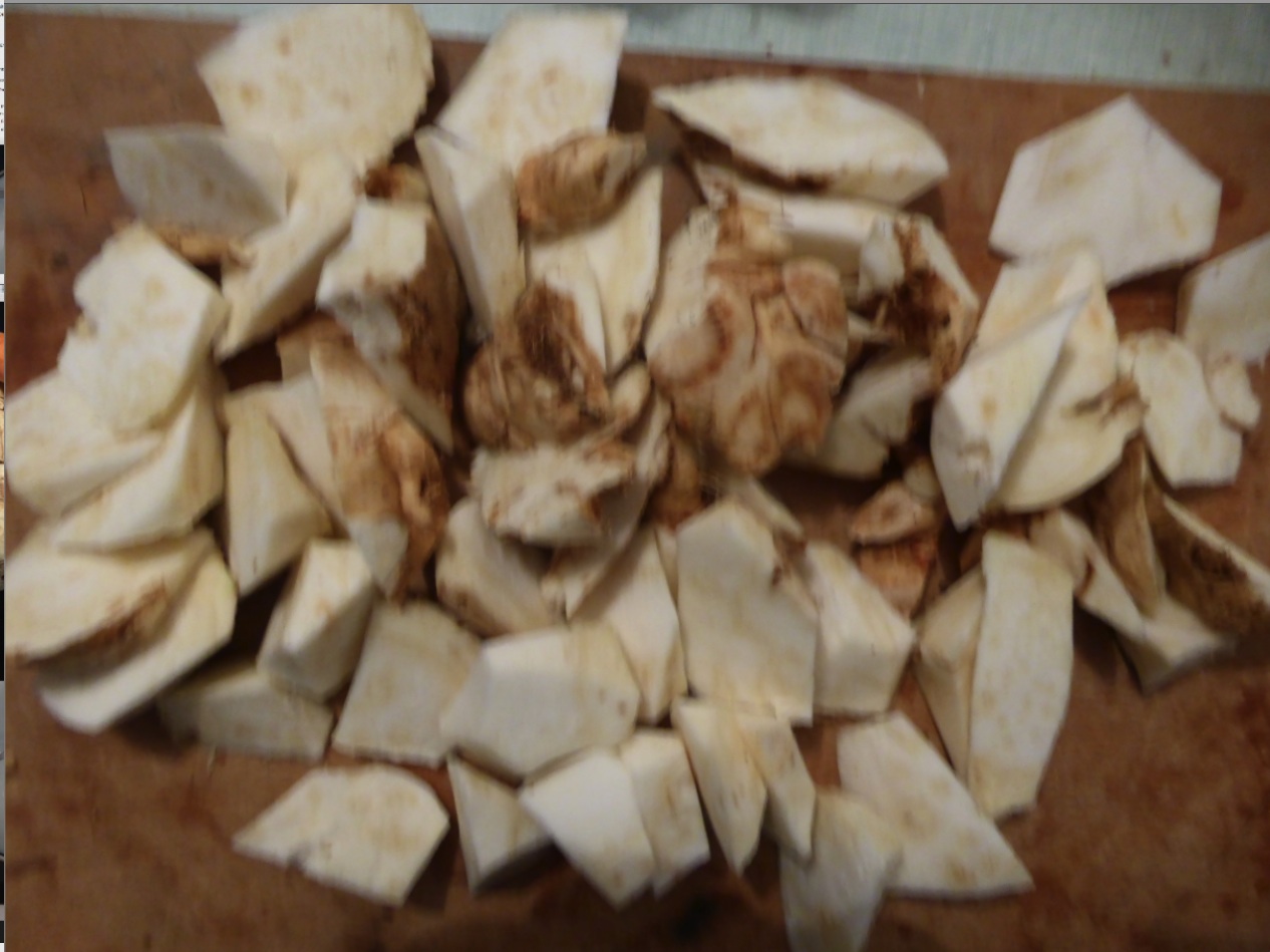 Revenons à nos légumes: éplucher et couper en morceaux.
