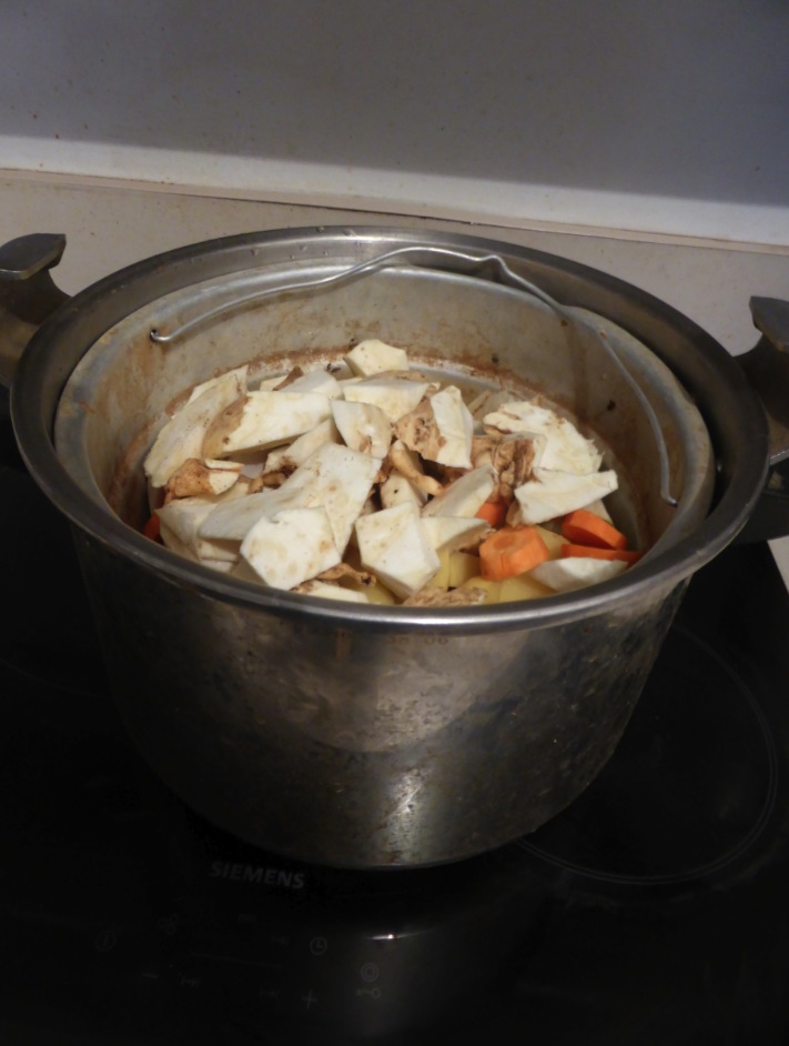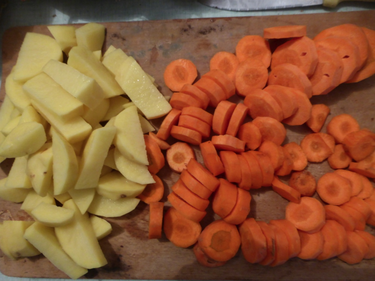 Revenons à nos légumes: éplucher et couper en morceaux.