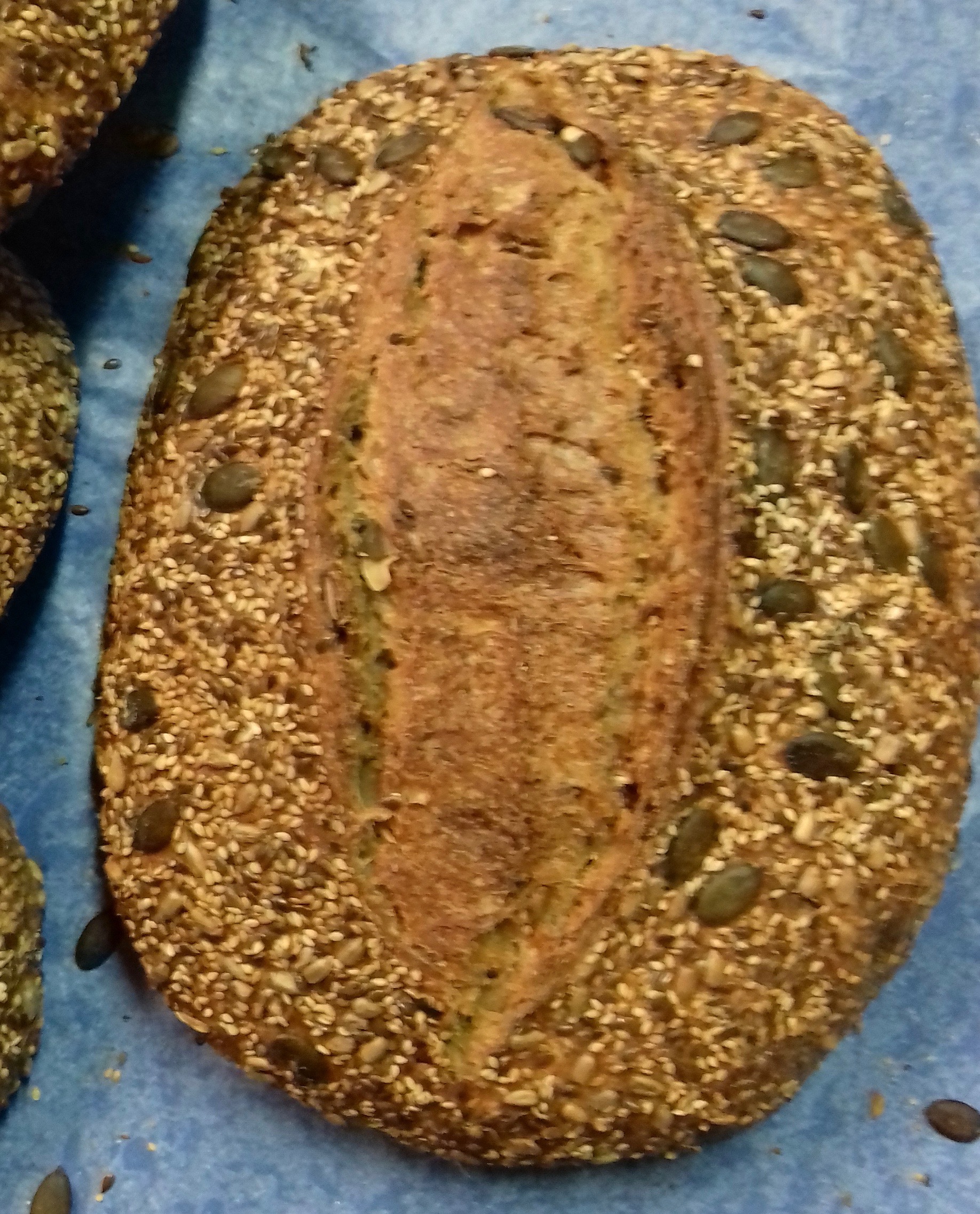 Le pain que Maxime nous présente ce soir — c’est Thomas qui « boulange » — est un pain de froment multigraines — lin, sésame, tournesol, courge — pétri à partir du mélange de deux variétés de blé :