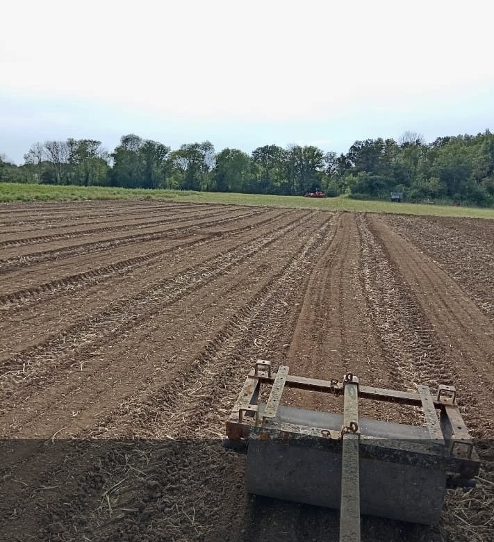 « Mécanos », Sohel et Christian, ont transformé un rouleau en métal de 2m en « rouleur ». La surface plane permet une levée plus homogène et facilite le désherbage mécanique. Plusieurs kilomètres de carottes, panais, betteraves ont été semés pour éviter les creux redoutables dans les récoltes de l’année prochaine.