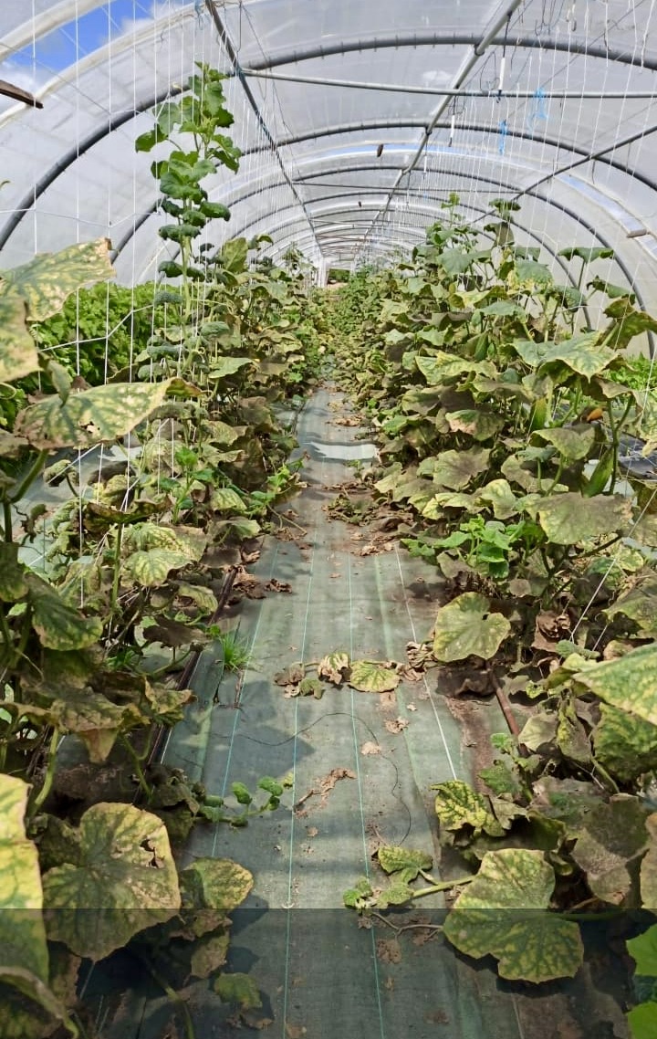 Voici une série de concombres, attaqués par les pucerons malgré un lâcher de chrysopes.