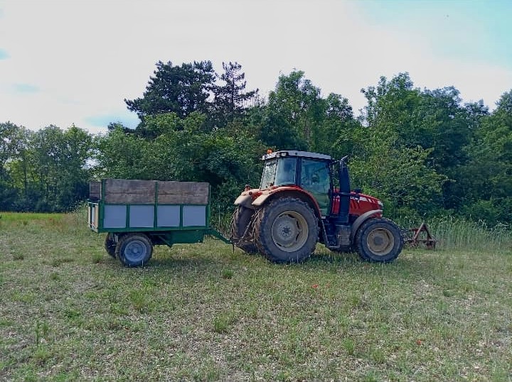 Cette toute petite remorque a l’espacement de roues idéal pour amener le compost sur les planches de légumes : l’épandage est facilité, le rendement meilleur, il y moins besoin de désherber, l’eau du sol est retenu…