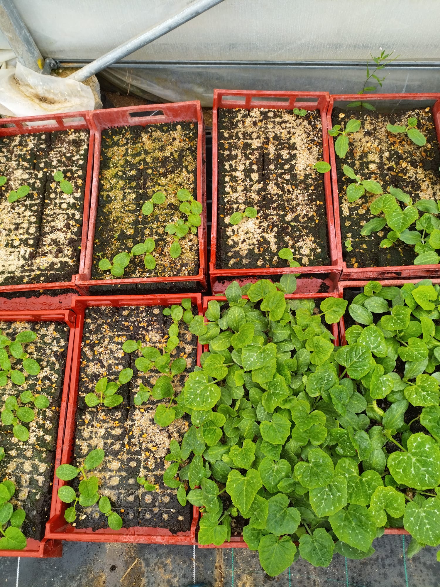 Sous les serres c’est plein a craquer mais pour rappel (et on ne saurait que trop vous inviter à venir aux journées ferme pour le voir) il faut du temps avant que tomates, aubergines, piments, poivrons, concombres produisent. »
