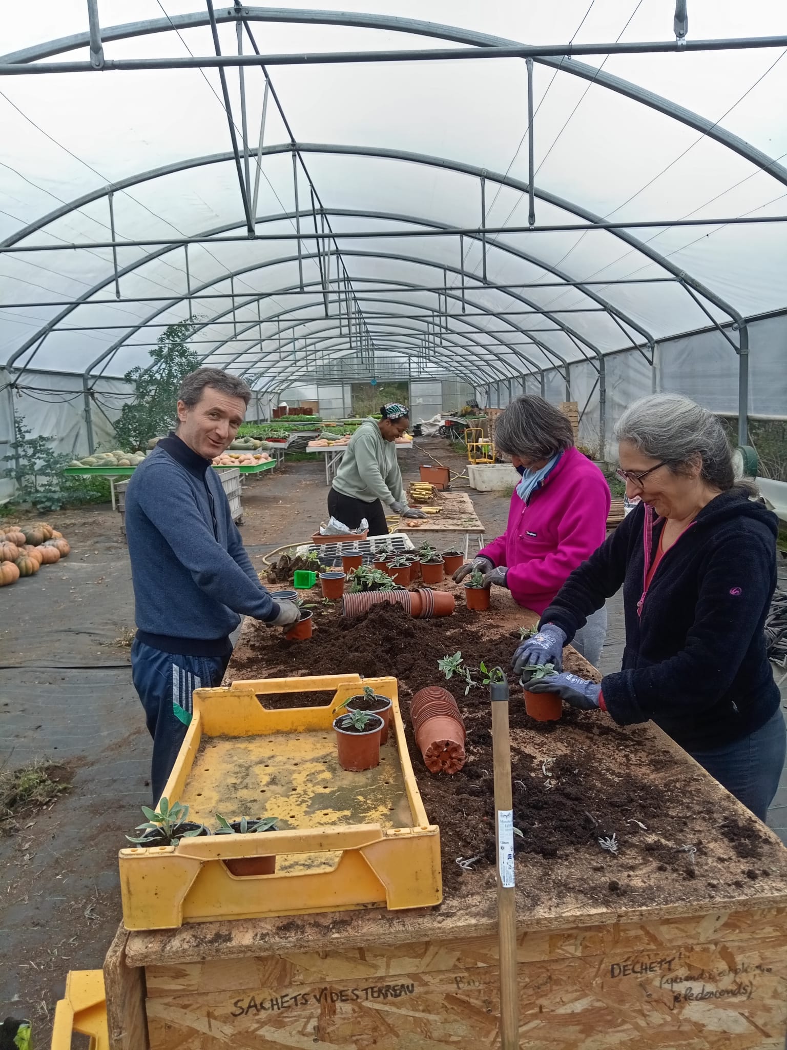 Maxime avait apporté du Bricheton un pain de 3 kilos pour le goûter joyeusement partagé sur une meule dans le jardin dûment accompagné de beurre, miel, fromage, chocolat et confitures, tisanes et jus de fruits.